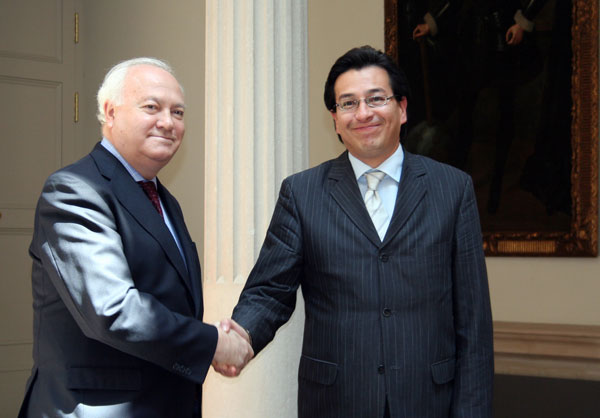 El jueves 23 de abril el Ministro Falconí se reunió en Madrid con el canciller español Miguel Ángel Moratinos para tratar sobre ese tema. En el encuentro, informó horas más tarde Falconí, el canciller español mostró “la buena voluntad del Gobierno Español” para encontrar una “solución diplomática y política al tema”. Según explicó el ministro de Correa, el lunes 27 de abril se formaría una comisión mixta para buscar solución al tema y darle así tranquilidad a sus compatriotas. Aunque no fijó una fecha límite para el grupo de trabajo formado por especialistas ecuatorianos y españoles, aclaró que sería “expedita e inmediata”. Entre las soluciones que se barajaron en dicha reunión se encuentra la posibilidad de aplicar directamente el convenio hispano-ecuatoriano de Doble Nacionalidad a los recién nacidos o la de crear un trámite administrativo para evitar la espera de un año para que los padres soliciten la nacionalidad española de sus hijos. Hay que aclarar que hasta antes de la nueva constitución los hijos de los ecuatorianos nacidos en España obtenían la nacionalidad española de manera automática.
