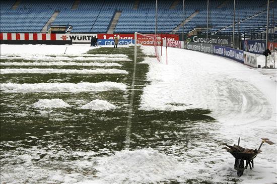 Debido a la nieve que cayó esta madrugada sobre Madrid, el Ayuntameinto de Madrid decidió suspender el partido de fútbol que iban a jugar las selecciones de Ecuador y Perú en el estadio Vicente Calderón. A través de un breve comunicado los organizadores anunciaron la suspensión, tras haberlo consensuado con ambas escuadras deportivas.