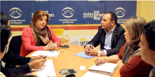 Ocio Latino.- Representantes de la Secretaría de Desarrollo para Repatriados y Refugiados Connacionales del Gobierno de la República de Paraguay y de la Federación de Asociaciones de Paraguayos Residentes en España, mantuvieron esta semana una reunión con Mario Cuzco, representante de la Secretaría Nacional del Migrante de Ecuador, (SENAMI) en España. El encuentro tuvo como objetivo mostrar a este colectivo el funcionamiento de esta institución ecuatoriana, generada en 2006 en base a las propuestas de los diversos movimientos sociales en España e instaurada por el actual gobierno.