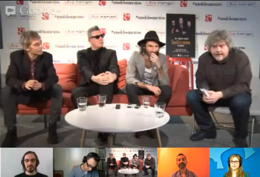 Los rockeros Ariel Rot, Loquillo y Leiva contaron sobre su gira ‘Uno de los nuestros’ en directo a los periodistas que le acompañaban en la sala y a los que estaban conectados por Hangouts. Los artistas han resaltado las ventajas que presentan estos medios junto a las redes sociales para acercarse más a los fans.