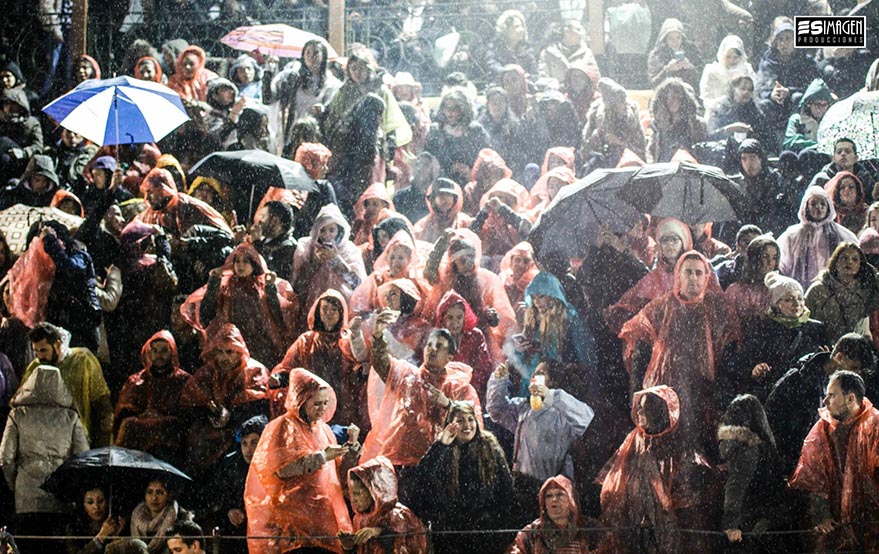 Pero eso no impidió a que ‘El Rey de la bachata’, Romeo Santos, salga al escenario y diga que “la lluvia es una bendición de Dios”, y así fue, especialmente para él, que veía caer la lluvia sin mojarse, y que a pesar del aguacero, tardó en salir al escenario hasta cuarenta minutos más de la hora prevista para el inicio del concierto, mientras sus fans se mojaban, se quejaban, y hasta eran trasladados al hospital por hipotermia, según informan algunos medios.