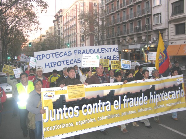 Ante la situación de emergencia social provocada por la crisis, la especulación y las hipotecas basura en la que viven miles de familias trabajadoras en España en general y de la comunidad migrante ecuatoriana en particular, se ha convocado una manifestación para este domingo 22.