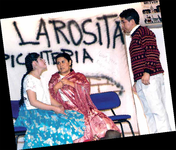 Lo primero empezó en la casa de María Rosa Constans. Ella, española, había apadrinado a niños bolivianos hacía unos años. Había ya conocido Bolivia y su amor por el país andino ya era un hecho. Entonces no existían asociaciones que pudieran dar cobijo a los bolivianos que empezaban a reunirse los fines de semana para descansar tras una semana de duro trabajo. Y María Rosa puso su casa a disposición. “Como toda la vida me he dedicado al teatro amateur se me ocurrió hacer un grupo boliviano, hace siete años”, nos cuenta María Rosa en su piso en Madrid. María Rosa puso a disposición del grupo también algo muy valioso: el Círculo Catalán – a cuya Junta Directiva ella pertenece- como sala para poder realizar sus presentaciones.