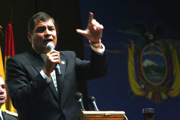 Correa dijo además que su Gobierno ha dirigido una misiva al Banco de España proponiéndole una salida “sensata” para paliar el problema hipotecario: “Que la casa en la que vive una familia pase al banco en términos contables, para que así el banco no se descapitalice, pero que la familia siga viviendo en la casa pagando un arriendo y después de un plazo prudencial de tres a cinco años, una vez superada la crisis, la familia pueda seguir pagando su crédito hipotecario y lo que ha aportado como alquiler sirva también como abono al crédito. Así todo el mundo gana. Pero como el capital financiero, en su avaricia, a veces es muy tonto, tiene que entrar la acción política”, sentenció el presidente.