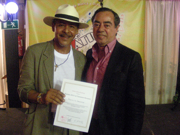 Panchito Santa Rosa recibió el galardón –diploma y dotación- de manos del Cónsul General del Perú en Madrid, Fernando Isasi (en la foto), quien acompañó la celebración de principio a fin. También se contó con la presencia de David Rodríguez, Consejero de la Embajada del Perú en España, así como con la de la querida dama de la canción Betty Missiego.