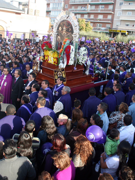 Desde la Parroquia de San Romualdo, donde la Hermandad tiene su sede y donde se realizó la correspondiente misa en honor del Cristo Moreno, la imagen réplica del Señor de los Milagros fue llevada en andas en las festividades que en su honor realizó este año la Tercera Cuadrilla de la hermandad.