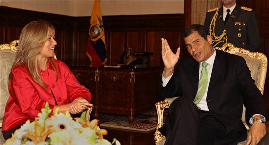 Tras su ratificación, el nuevo convenio en materia de Seguridad Social hispano-ecuatoriano entrará en vigor a mediados del próximo diciembre. Así se dio a conocer durante la reciente visita a Ecuador de Trinidad Jiménez, ministra de Asuntos Exteriores de España (en la foto durante la visita junto al presidente ecuatoriano, Rafael Correa). El Legislativo Ecuatoriano ratificó el convenio el pasado 29 de septiembre mientras que el Congreso Español hizo lo propio en mayo también de este año.