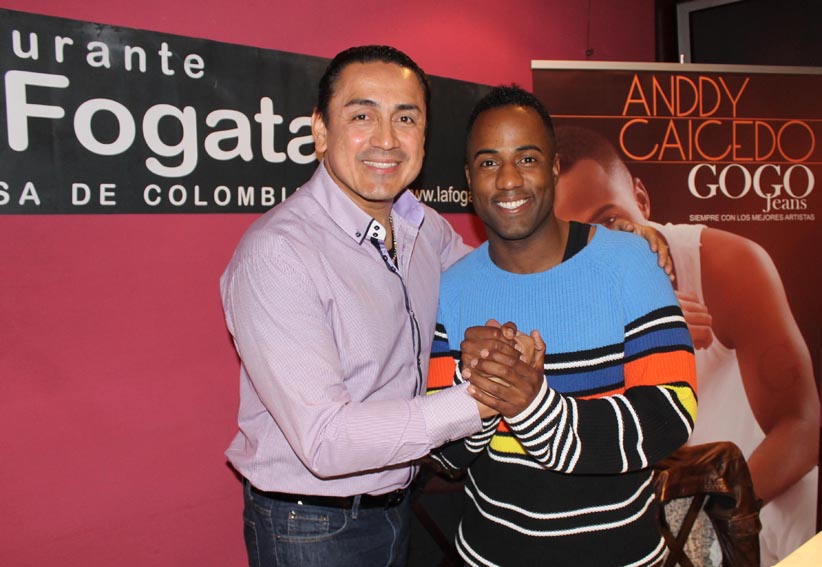 Ocio Latino.-En una distendida velada en Madrid, en el restaurante colombiano La Fogata, Anddy Caicedo, el cantante colombiano que durante ocho años cantó en la conocida Orquesta Guayacán, comentó sobre su trabajo, su gira, se mostró cercano, risueño y amable con la prensa. Lo acompañó Juan Calos Palacios, propietario de la empresa Gogo Jeans, uno de los empresarios colombianos que reside en España y que impulsará la carrera del artista en este país.
