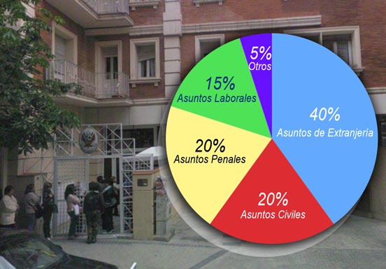 Ocio Latino.-El Gabinete Jurídico Peruano, un voluntariado de abogados peruanos con residencia y colegiación en el Ilustre Colegio de Abogados de Madrid que trabaja en coordinación con el Consulado General del Perú en Madrid, ha atendido desde junio de 2009, fecha de su creación, 5.563 consultas gratuitas de usuarios peruanos, de las cuales 40% de las atenciones fueron en asuntos de extranjería: renovación y denegaciones de permisos de trabajo y residencia, nacionalidad, reagrupación familiar y expulsiones. En el área penal se atendieron 20% de consultas con mayor incidencia en los delitos de violencia de género, lesiones y alcoholemia. Los asuntos civiles como: desahucios, alimentos y matrimoniales, ocuparon otro 20% de los casos. Finalmente un 15% de las consultas fueron en materia laboral: despidos y finiquitos.