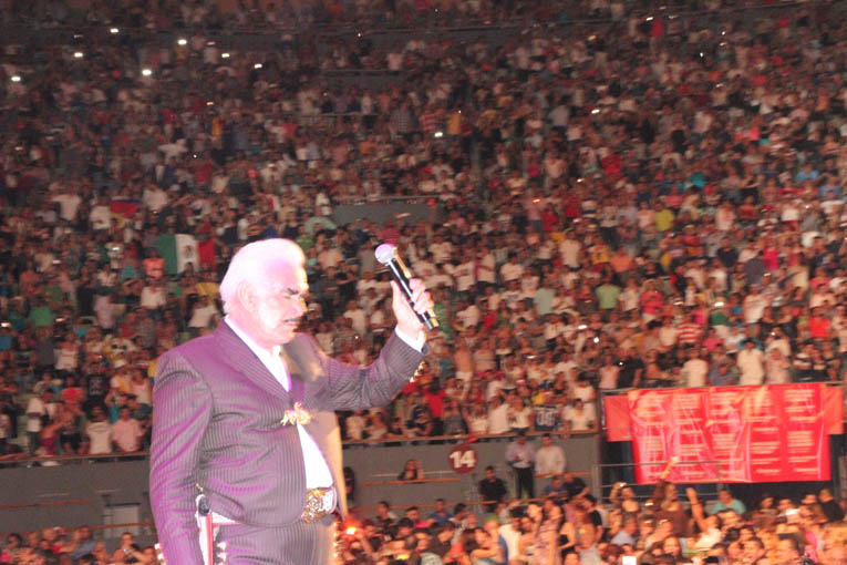 Pero no hubo que esperar mucho más, la puntualidad de la organización es un mérito para aplaudir en este tipo de eventos. Y a las 21 horas, con las luces apagadas, la banda de quince músicos cuadrándose en sus puestos, y al grito de Chente, Chente, las doce mil personas que abarrotaron el Palacio Vistalegre de Madrid apuraron la salida de la leyenda viva de la música ranchera, entre ensordecedores gritos, aplausos y vítores que demuestran la vigencia de este artista de 72 años y una presencia impecable en el escenario. “No tuve el valor suficiente para venir a recoger su cariño y sus aplausos, pero no me quería retirar sin ellos” dijo Fernández, un maestro en manejar a su público al que enseguida dedicó ‘Me voy a quitar de en medio’ que todos siguieron a coro.