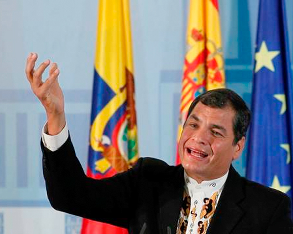 “Los ecuatorianos llegaron a España por la quiebra de los bancos en Ecuador, porque todos pensaron que los bancos se autorregularían y quebraron” comentó Correa que goza del 80% de popularidad en su país.
