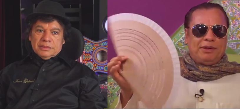 El artista Juan Gabriel se muestra sereno y cubierto con con unas grandes gafas de sol, un sombrero, un abanico y una pashmina al cuello, listo para reaparecer, aunque también deja claro que está más delgado.