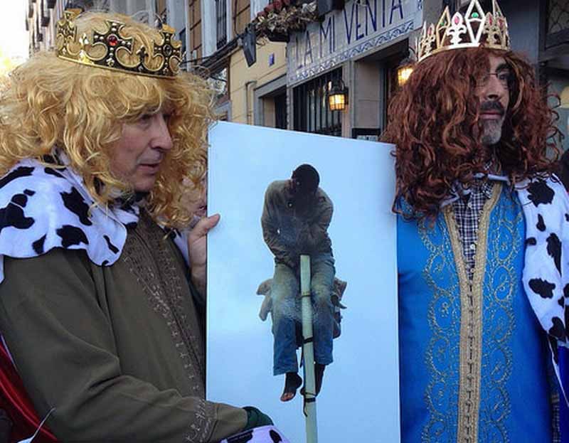 Ocio Latino.- Ciento treinta organizaciones no gubernamentales que defienden los derechos de los inmigrantes en España protestaron ayer frente al Senado y reclamaron, simbólicamente, por la “deportación ilegal de Baltasar”, el rey mago negro. La manifestación la encabezaron sus compañeros Reyes Magos Melchor y Gaspar, y pidieron que “paralicen” la reforma de la Ley de Extranjería que regula las conocidas como ‘devoluciones en caliente’ en Ceuta y Melilla.