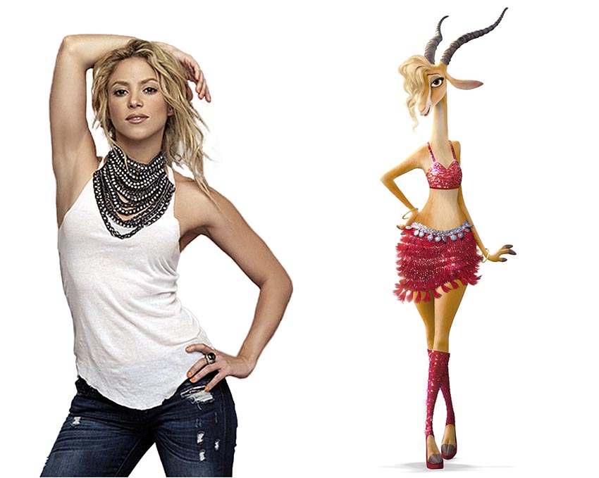 La cantante colombiana no solo ha puesto la voz en esta banda sonora, también ha prestado su voz e imagen a uno de los personajes: la gacela Gazelle, una estrella del pop que habita en Zootopia, una ciudad habitada exclusivamente por animales.