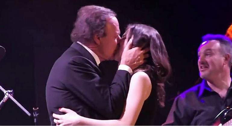 En el citado vídeo, Julio Iglesias invita a una joven seguidora a subir al escenario en pleno directo. Una vez arriba, la saluda con un tremendo beso en la boca que la deja sorprendida. Entre notas musicales, la coge de la cintura, la abraza por el cuello, le susurra al oído y la vuelve a besar mientras ella, que incluso había perdido un pendiente con tanto ‘ajetreo’, se muestra visiblemente incómoda.