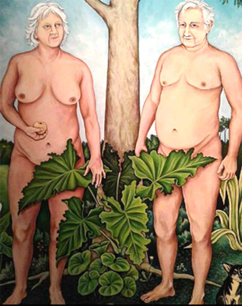 Ocio Latino.- El cuadro “Génesis Uruguay” obra del artista Julio de Sosa mide un metro y medio y muestra al expresidente de Uruguay Mujica y su mujer, Lucía Topolansky, desnudos en el edén, rodeados de una vegetación que cubre los genitales. La obra que se exhibía en la galería de Arte Diana Saravia en Montevideo fue retirada por orden policial.