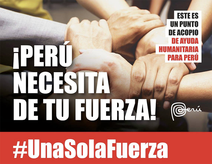 Un grupo de peruanos se ha organizado para dar respuesta al clamor de muchos ciudadanos de querer enviar alimentos no perecederos, ropa o mantas a Perú, golpeado por las intensas lluvias, huaicos y desbordes que ha dejado hasta el momento; 106 víctimas mortales, más de 160 mil damnificados y 213.845 viviendas afectadas, según el último boletín del Centro de Operaciones de Emergencia Nacional (COEN).