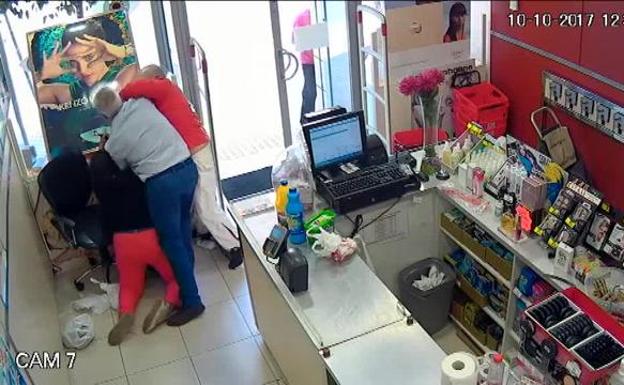 Sucedió en una droguería del barrio Juan XXIII en Sevilla, España, y quedó registrado por las cámaras de seguridad del lugar.