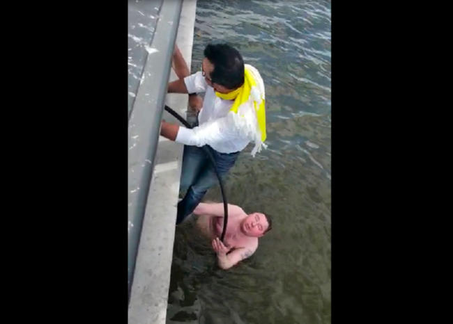 Uno de ellos grabó el angustioso momento y en uno de los videos se ve cómo este hombre en su idioma trataba de hacerse entender para agradecer a los connacionales que le habían salvado la vida. Ellos publicaron el video con la esperanza de que se cambie la imagen de los colombianos en el mundial de Rusia.