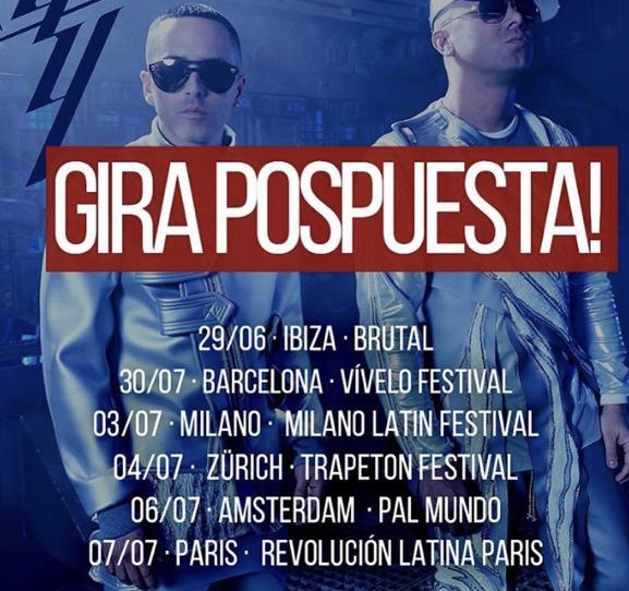 Entre los eventos que han bajado el telón sin el primer acorde musical está el Trapetón Summer en Suiza, en cuyo cartel estaban anunciados Farruko, Becky G, Farina, Darel y Wisin y Yandel, éstos últimos han lanzado un comunicado donde afirman que no vienen a Europa por motivos de fuerza mayor. Los puertorriqueños tenían previsto presentarse en Ibiza, Amsterdam, París, Milán, Zurich y Barcelona, entre otras capitales. Esta no es la primera vez que “el dúo de la victoria” como se hacen llamar ven como su tour europeo nuevamente se va al traste.