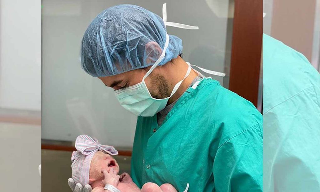 Ocio Latino-. El hijo de Julio Iglesias, Enrique Iglesias, ha publicado la primera imagen de su tercer bebé, una fotografía que se tomó nada más nacer, mientras él viste aún la indumentaria del quirófano y la criatura un turbante en la cabeza.