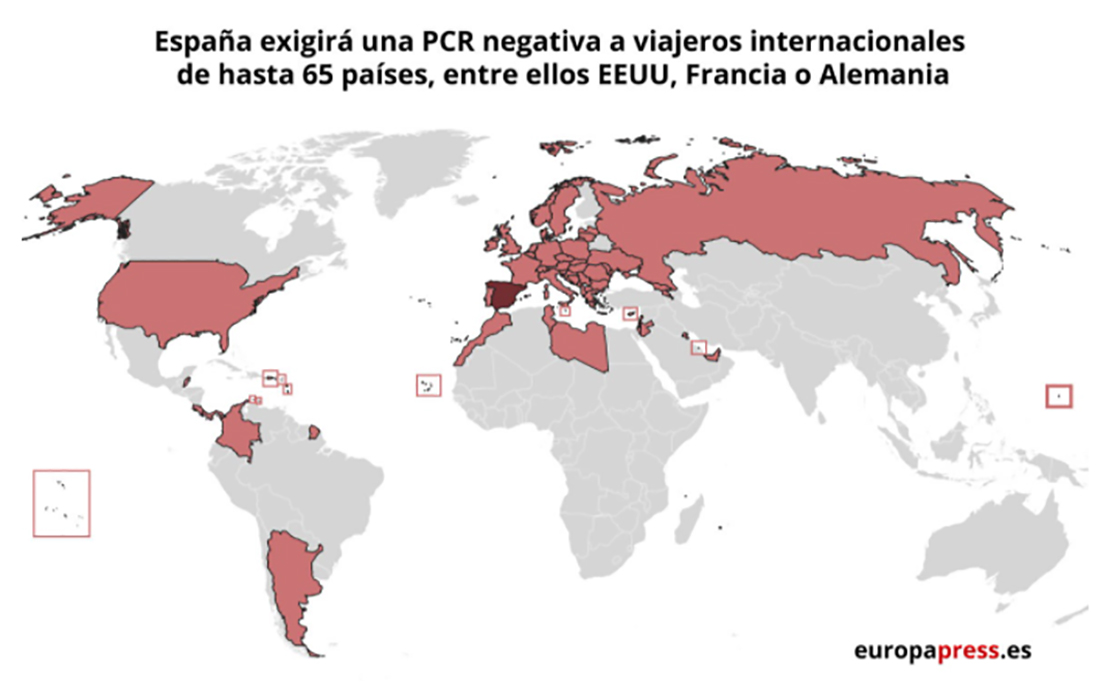 Mapa con países a los que España exigirá PCR negativa – EPDATA