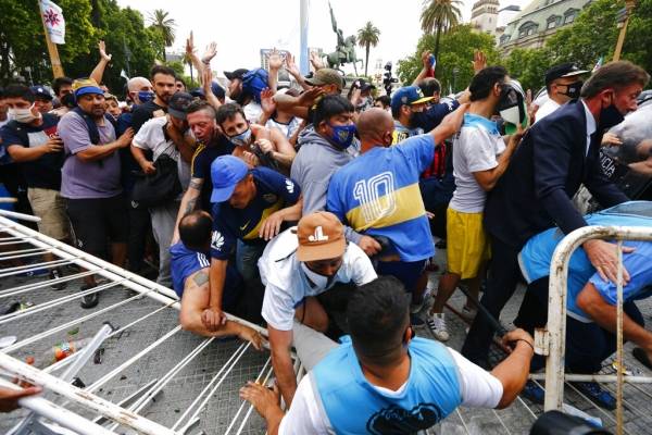 Diego Armando Maradona es velado desde las 6:00 horas de este jueves en un salón de la Casa Rosada en Buenos Aires. Sobre las 14 horas se desataron incidentes entre algunos de quienes habían concurrido a despedir a su ídolo y efectivos de la Policía bonaerense, de acuerdo a lo que informaron varios medios argentinos.