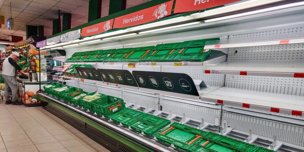 Un ejemplo de ello es el Carrefour de la calle Alameda, en Madrid ciudad. Uno de sus trabajadores ha explicado que faltan “productos básicos”, como son “la leche, los huevos, el arroz o las ensaladas”.