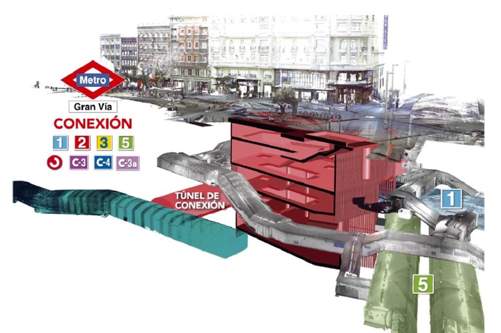 La remodelación de la estación de Gran Vía incluye la réplica en superficie del antiguo templete de la Red de San Luis del arquitecto Antonio Palacios, que en su momento sirvió de hito de acceso a la antigua estación de Metro, y que estará ubicado entre las calles Montera y Gran Vía.