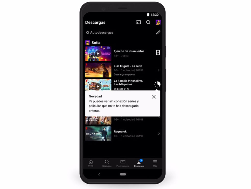 La descarga parcial permite empezar a ver un contenido aunque la descarga no se haya completado. En el momento en que el usuario vuelve a tener buena conexión, podrá seguir viéndola mientras acaba de descargarse, según explica la compañía en un comunicado.