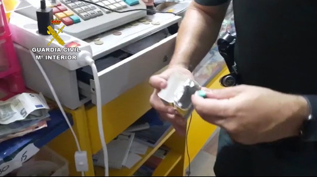 Preguntada la propietaria del mismo por los hechos entregó de manera voluntaria dos dosis de una sustancia amarronada similar al hachís, y otras dos de un polvo blanquecino que podría ser cocaína, todas ellas similares en preparación y envoltorio y que estaban ocultas en la parte interior de la caja registradora.