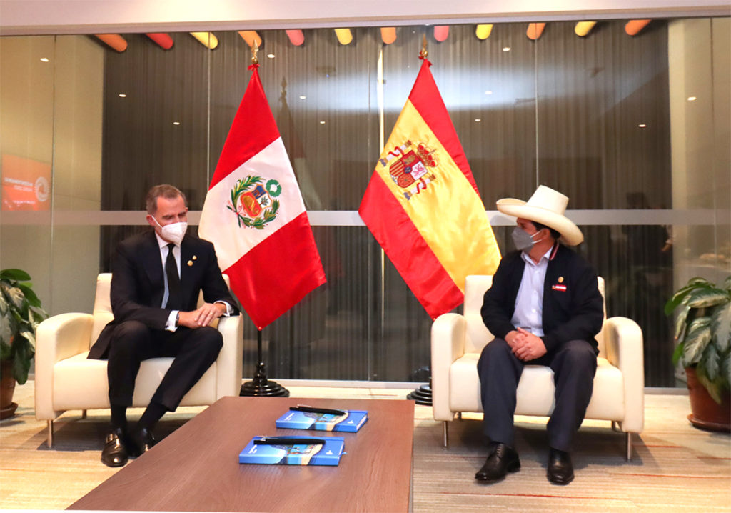 La Casa Real ha informado en un comunicado sobre el encuentro entre Felipe VI y Castillo en la tarde de este martes en el Centro de Convenciones de Lima, una cita en la que han estado presentes las respectivas delegaciones de los países.