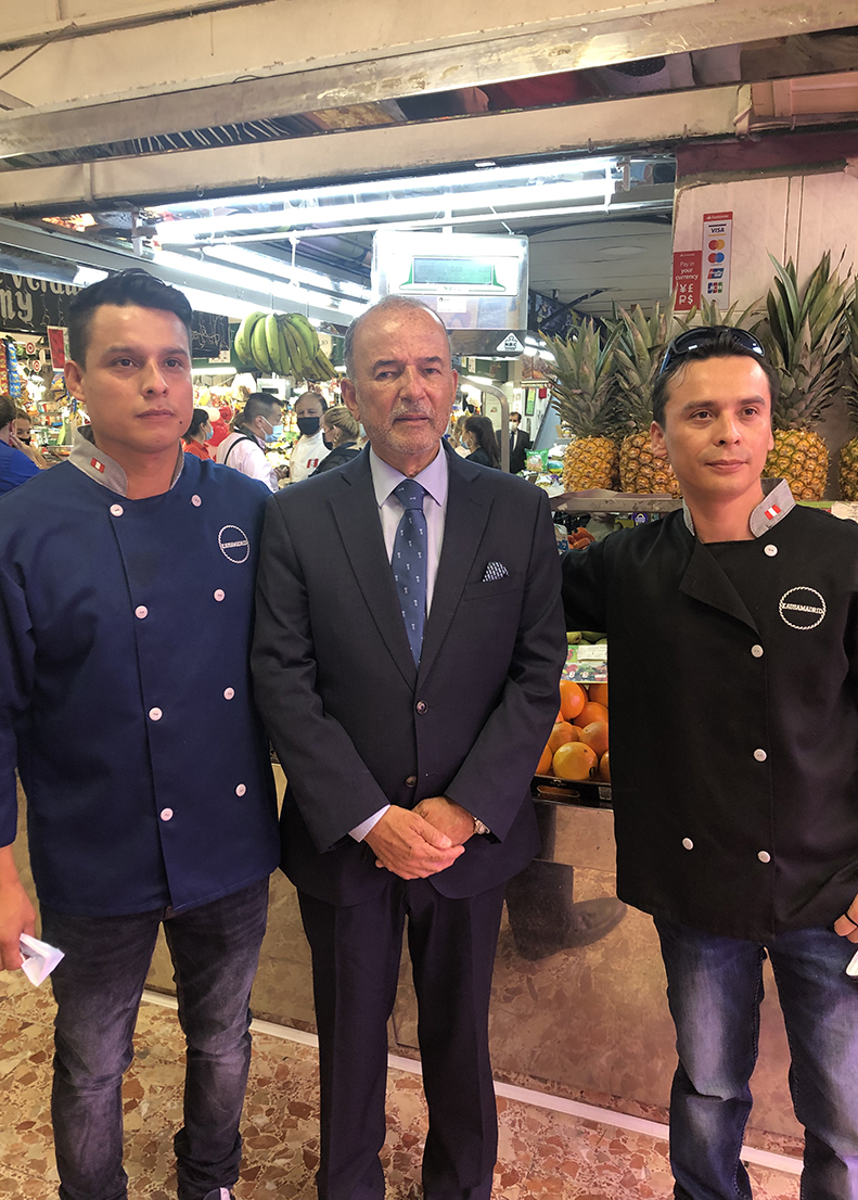 La visita del embajador y de reconocidos chef como Luis Barrios, Jhosef Arias o Robert González, forma parte de la campaña “Sabores del Perú: Celebración de la Cocina Peruana en España en Homenaje al Bicentenario de la Independencia” que se desarrolla del 25 de junio al 11 de julio del presente año, donde hasta 50 restaurantes peruanos de Madrid, Barcelona o Bilbao, entre otras ciudades, se han sumado a esta celebración ofreciendo un menú ‘Especial Bicentenario’ o con propuestas fuera de su conocida carta, ofreciendo platos únicos y creados especialmente para la ocasión.