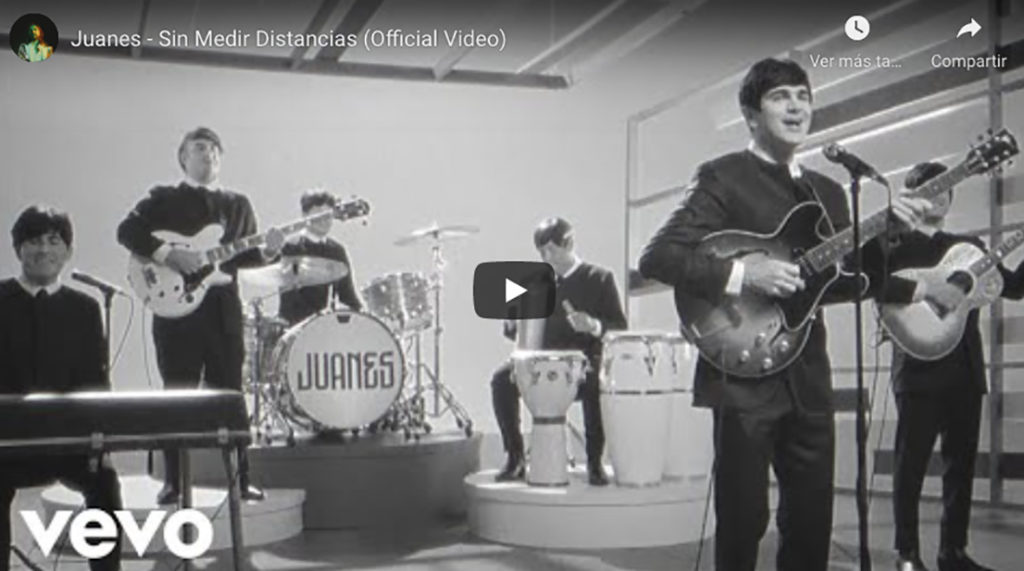 En el video JUANES rinde homenaje a la música en la TV y se inspira en los programas clásicos de los 60s y esa inolvidable escena de The Ed Sullivan show en donde Los Beatles tocaron por primera vez al llegar a América.