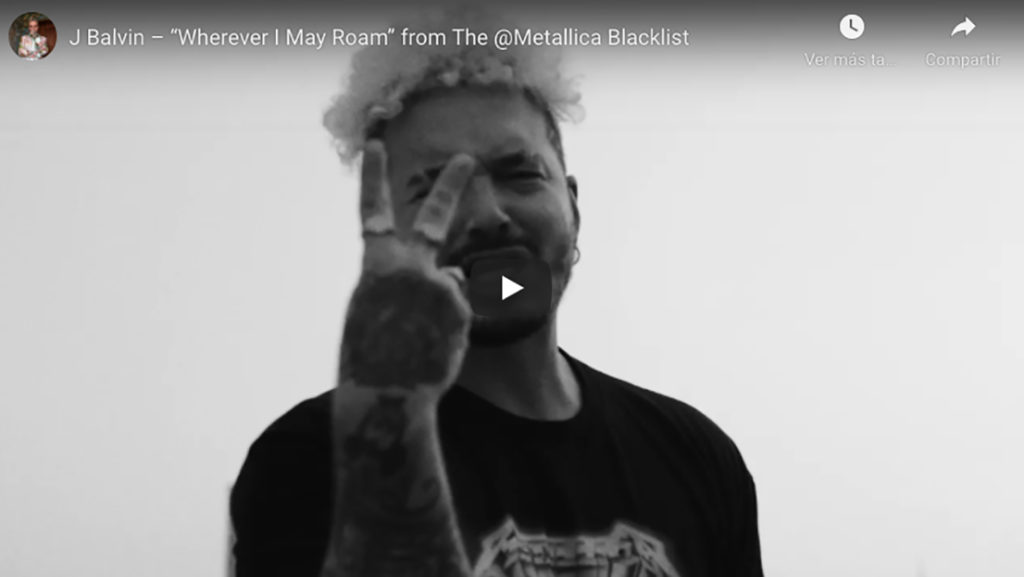 J Balvin ha presentado su interpretación del clásico tema de Metallica “Wherever I May Roam”. Acompañada de un vídeo en blanco y negro en el que se intercalan imágenes retro de un concierto de Metallica con el rap de Balvin, la nueva canción mezcla el estilo reggaetonero por el que es conocido Balvin con muestras y riffs de guitarra de la canción original.