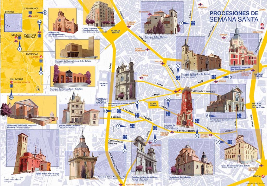 >>>>> Descarga aquí el plano del recorrido de Procesiones de Semana Santa en Madrid 2022
