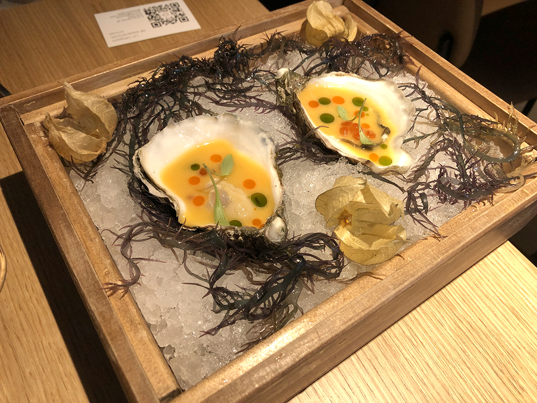 También probamos la Ostra Kuro preparada y macerada con leche de tigre y acompañada de huevas de salmón, que llegaron frescas a la mesa con una presentación original y atrevida.