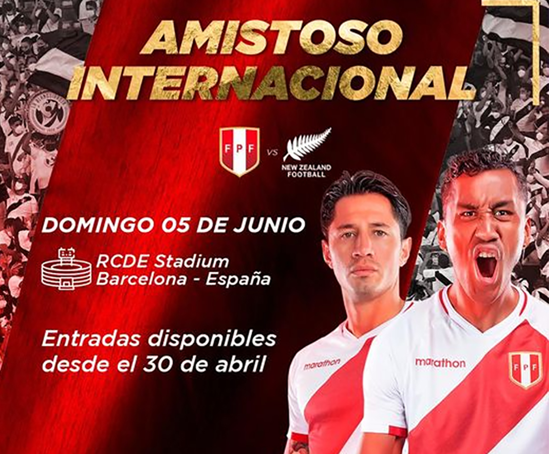 Últimas entradas disponibles para el partido de Perú vs Nueva Zelanda que se enfrentarán por tercera vez en la historia, en esta ocasión en un partido amistoso en la ciudad de Barcelona.
