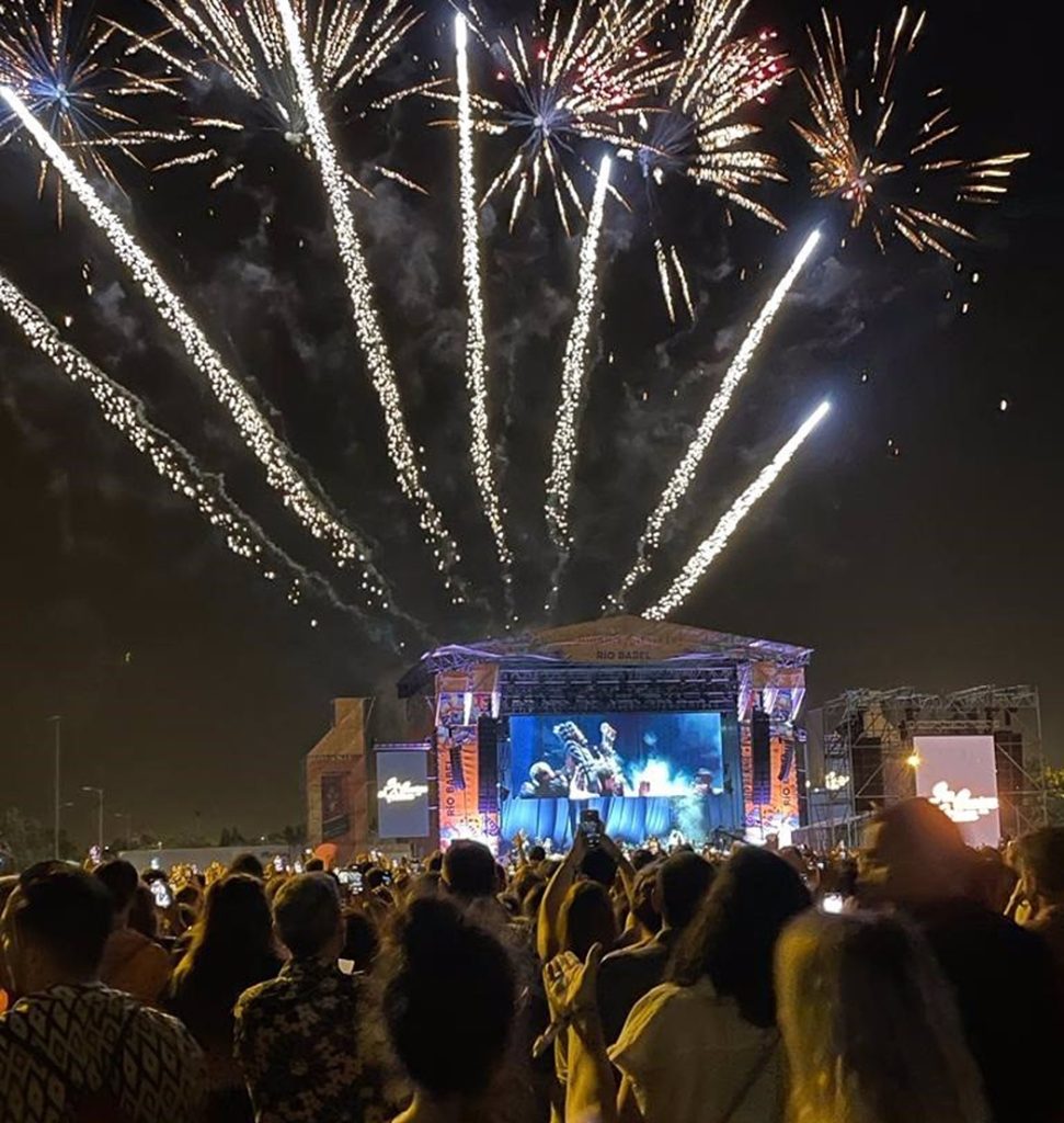 A diferencia de espacios cerrados, Pucho aprovechó el basto recinto del aparcamiento de la Caja Mágica para que los fuegos artificiales iluminaran la calurosa noche veraniega cada vez que cantaba ‘Tranquilísimo’ o en varios puntos de ‘Llorando en la limo’.