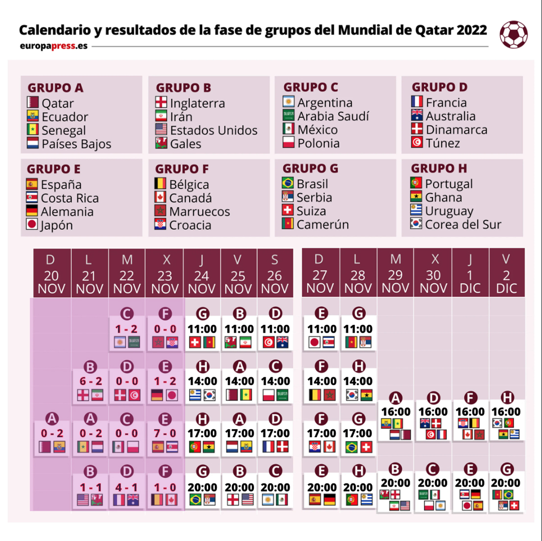 Para eso hemos elaborado un calendario fixture ordenado por día y hora de los partidos del Mundial Qatar 2022.