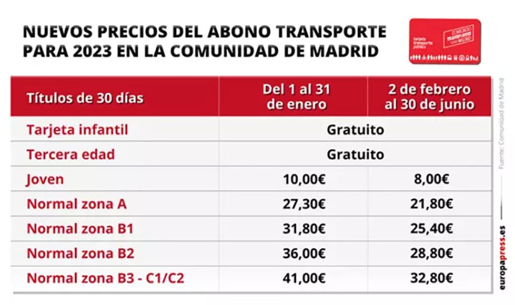 Como hace unos días anunció la presidenta de la Comunidad de Madrid, Isabel Díaz Ayuso, el abono tendrá a partir de febrero una reducción del 60%, es decir, se ampliará en un 10% el descuento con respecto a enero y será así hasta junio.
