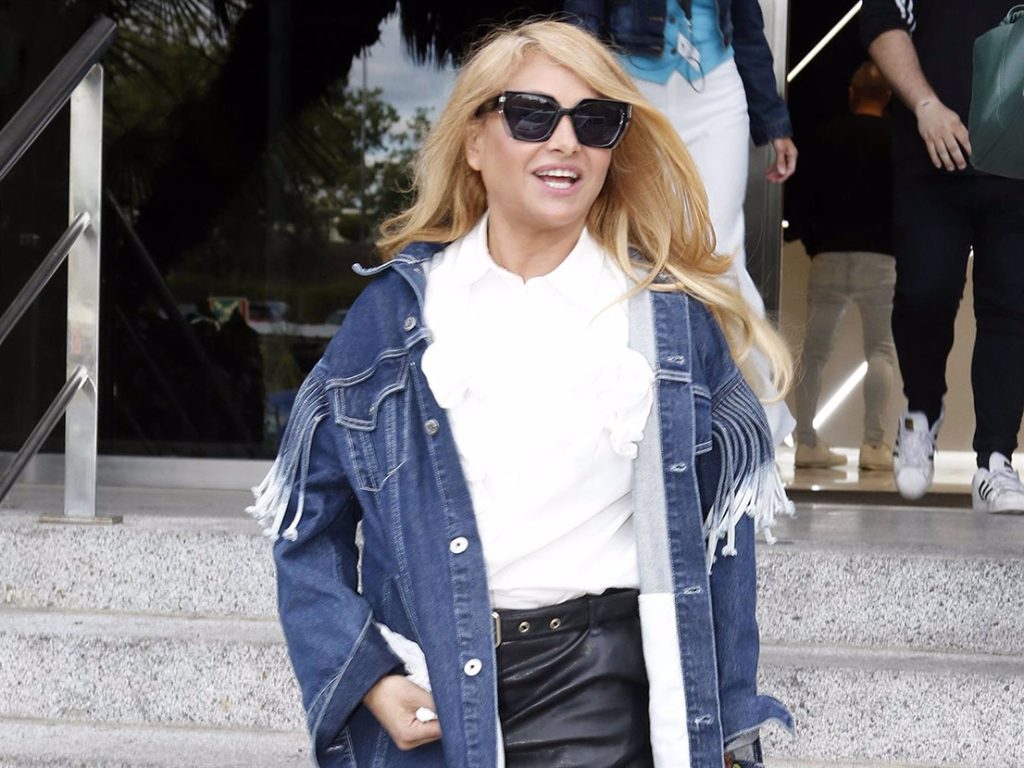 Y, es innegable, la soltería le sienta a las mil maravillas porque está más guapa que nunca. En esta ocasión, la cantante escogió un look tan llamativo como original para su entrevista en el programa ‘Y ahora Sonsoles’; camisa blanca con chorreras, mini falda de piel negra, cazadora vaquera oversize con maxiflecos en blanco y botas altas tipo mosqueteras también en denim, además de sus inseparables gafas de sol negras./ Europa Press
