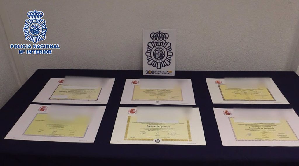 En este margen temporal, los presuntos falsificadores habrían nutrido a cientos de personas afincadas en nuestro país de diferentes títulos universitarios fraudulentos que, posteriormente, sus clientes utilizaban para acceder a puestos de trabajo.