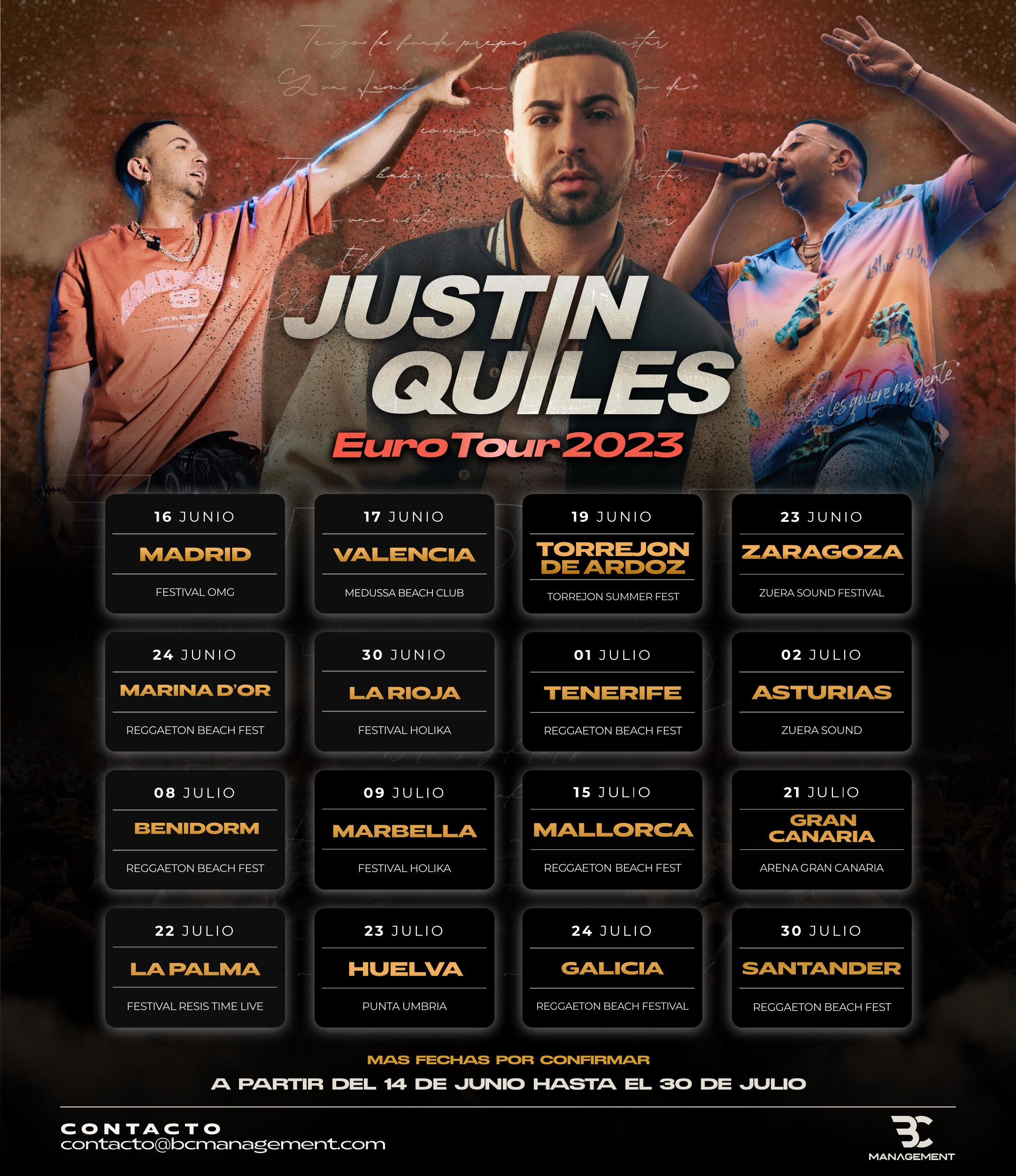 Este es el caso de Justin Quiles, Ryan Castro y Dalex, tres artistas que, tal y como ha podido dar a conocer LOS40 Urban en exclusiva, ya tienen las fechas de sus giras por Europa para este 2023. Según nos ha desvelado BC Management, agencia dirigida por Belinda Cruz, estos tres reggaetoneros estarán en España, Francia y Países Bajos, entre otros, durante las próximas semanas y meses.