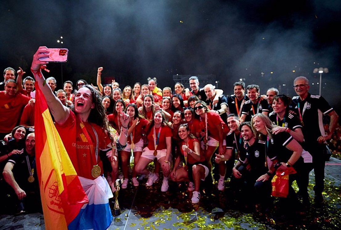 La afición aclamó de manera especial a Jenni Hermoso, madrileña además de centenaria ya como internacional; Misa Rodríguez, portera del Real Madrid; la doble Balón de Oro, Alexia Putellas, o Salma Paralluelo, campeona del mundo en todas las categorías, a sus 19 años, y clave en la consecución del título. Los últimos en salir, con el trofeo, fueron Vilda, la capitana Ivana y Olga Carmona, protagonista por el peor y el mejor día de su vida.