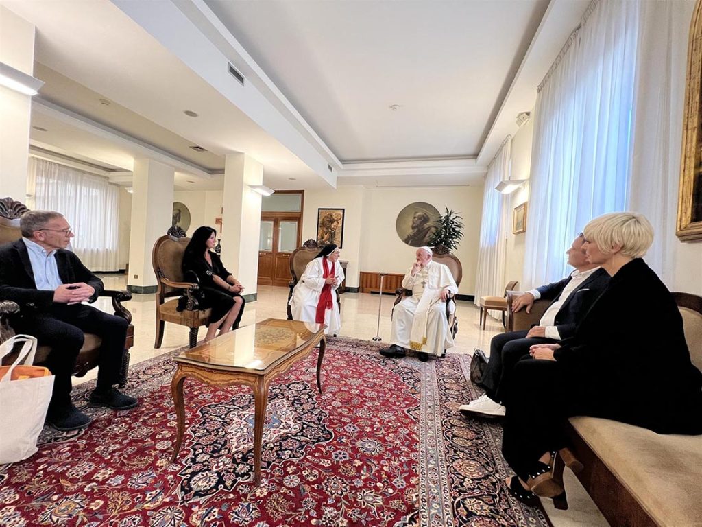 El encuentro de la religiosa y el empresario con el Papa Francisco ha tenido lugar en su residencia de Santa Clara y se ha alargado durante una hora en la que Su Santidad ha expresado su apoyo total a la ceremonia que servirá de misa por La Paz.