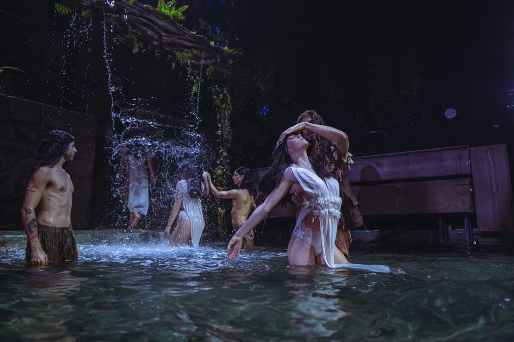 La puesta en escena de Malinche ha sido llevada a cabo por los prestigiosos talleres de Molla y Estudio Arte Herrador, bajo la dirección de Hansel Cereza, reconocido experto en vuelos acrobáticos y artes escénicas. El vestuario, a cargo del innovador José Ventura, ha sido una pieza clave en la creación de la atmósfera mágica del espectáculo.