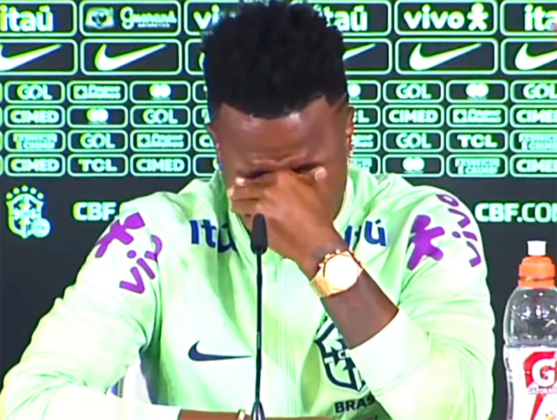 El jugador se la selección brasileña y del Real Madrid Vinícius Júnior insistió este lunes, al abordar el tema del racismo y entre lágrimas, en que “solo” quiere “jugar al fútbol y que “todo el mundo tenga una vida mejor”, porque reconoció que está “muy triste” por cada episodio racista, por los que tiene “menos voluntad de jugar” al fútbol.