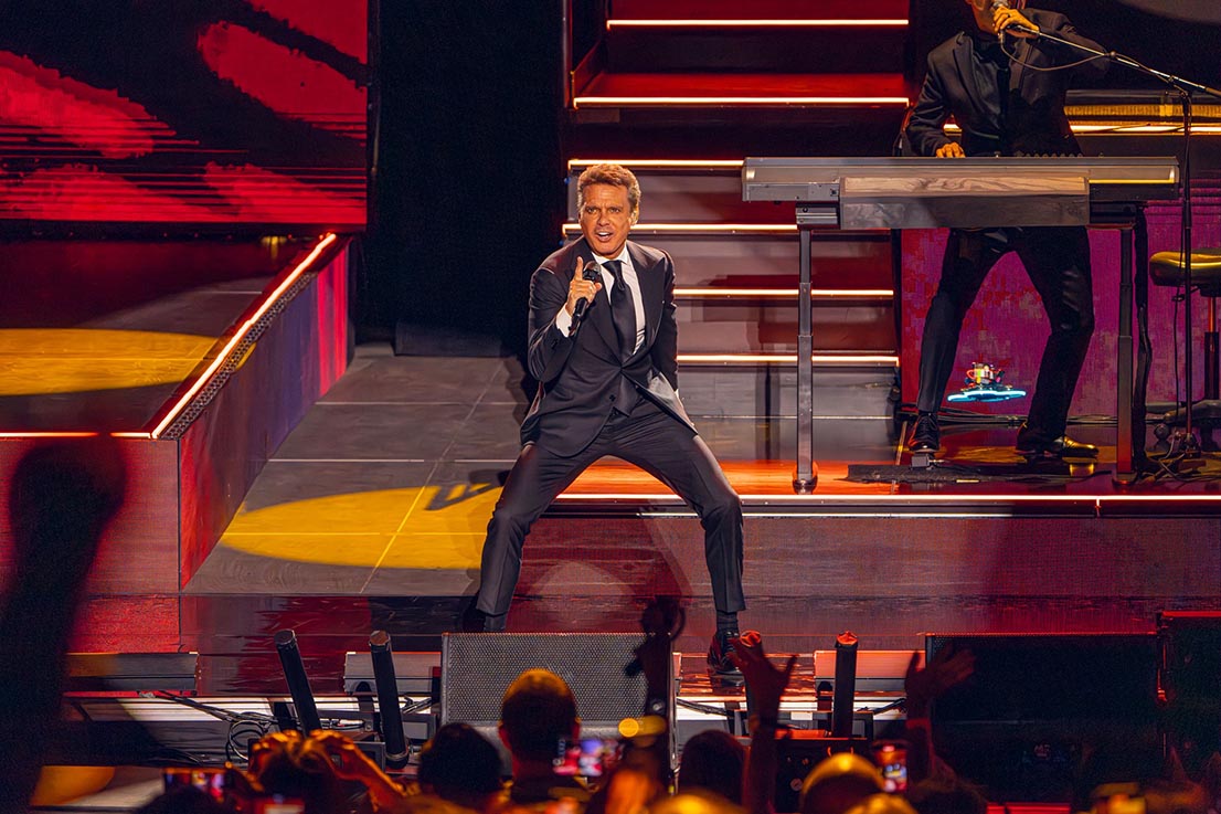 | El ‘Sol’ de México -sobrenombre que le identifica-, a sus 54 años, silueta elegante y contoneándose a golpe de pelvis, arrancó su segundo concierto en Marbella con el bailable hit “Será que no me amas”. En el escenario, su rotunda presencia escénica se vio reforzada por una imponente banda de instrumentos de viento, cuerda y percusión, además de diferentes teclados y un trío de coristas que le acompañó en su sublime interpretación. Luis Miguel, quien para la gira que inició en enero de este año, y con la que este verano está recorriendo la geografía de nuestro país, ha diseñado un show impecable y milimétrico, interpretó un repertorio que disfrutó con creces su incondicional legión de seguidores.