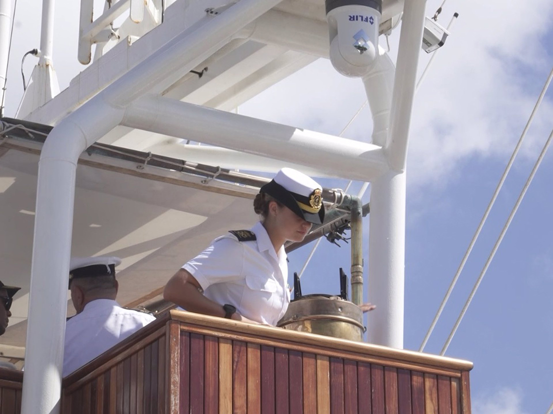 En torno a las 10.00 de la mañana hora local el navío atracaba en el puerto Punta Torrecilla de Santo Domingo y, a diferencia de otras ocasiones, la hija mayor de los Reyes Felipe y Letizia no ha ocupado un puesto en la cubierta junto al resto de guardamarinas, sino que ha sido la responsable de la maniobra de arribo y atraque desde la torre de mando de la embarcación, realizando la función de oficial de guardia en puente bajo la supervisión del oficial de navegación al mando, y dando las órdenes de timón y máquinas auxiliada por sus compañeros.